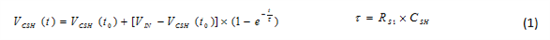图1显示了一个逐次逼近寄存器SAR模数转换器 (ADC)输入电路的简化模型和内部采样电容器的时域充电响应。