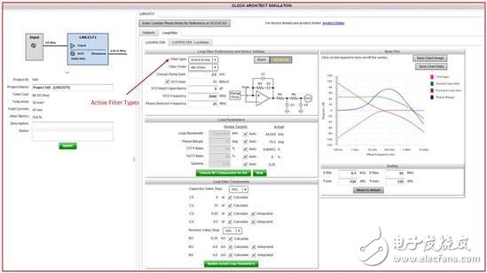 直到近期,WEBENCH Clock Architect还只能够支持无源环路滤波器设计。现在,由于最新的一次升级,这个工具支持有源环路滤波器设计(在Advanced(高级)设置下)。相对于有源环路滤波器,无源环路滤波器通常由于其低成本、简单性和带内相位噪声等因素而受到用户欢迎。不过,在特定情况下—当VCO需要的调谐电压高于PLL电荷泵所能提供的电压时,或者当VCXO的输入阻抗不足时—就必须使用有源滤波器了。请见图7中的下拉菜单。