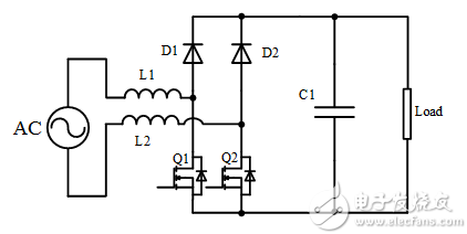 常用的有桥PFC为boost PFC电路,如图1所示,在整流桥之后使用一个boost电路完成功率因素校正和输出电压稳定的功能。选用boost电路的一个重要原因就是boost电路具有驱动简单的特点。对于这种有桥boost PFC电路可以采用TI的低边驱动芯片,如UCC27524,UCC27517等。这种驱动芯片相对于分立器件方案,具有驱动电流大,驱动速度快,尺寸更小,可靠性更高的特点,目前广泛应用于各种通信电源模块,家用空调等场合。