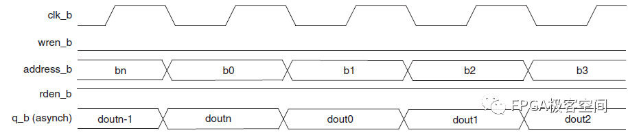 当读使能有效时,数据会在时钟下一个上升沿从Q端输出。