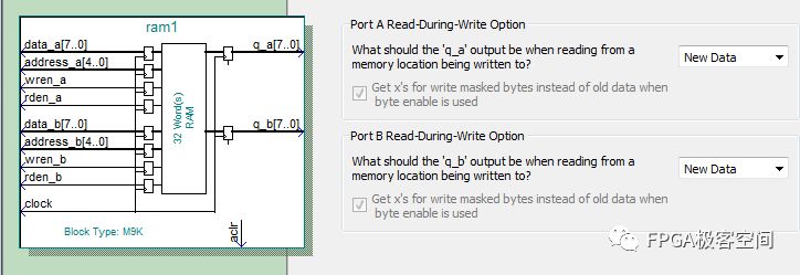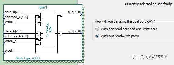 调用真双口RAM,如图设置。