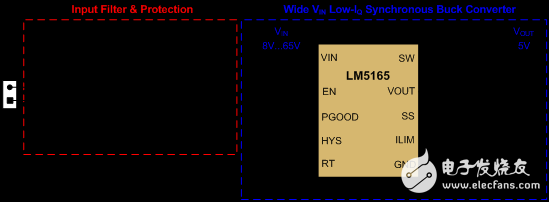 输入滤波器和保护 宽 VIN 低 IQ 同步降压型转换器