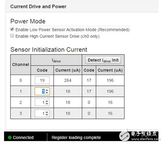 如图1中所示,你可以直接在DRIVE_CURRENT_CHx寄存器内设定IDRIVE,或者在GUI中进行设定。