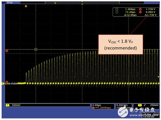 图3:IDRIVE = 19,这是满足Vosc< 1.8VP 标准的最高设置(建议值)