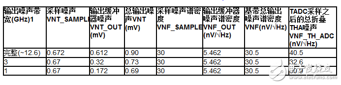 在采样过程中,下游ADC将输入带宽(表1和表2中所示的滤波和ADC输入带宽的组合)上的所有THA噪声外差到一个ADC奈奎斯特区间。因此,总折叠噪声是ADC噪声带宽上的总THA输出放大器时域噪声的一部分。