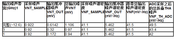表1.HMC661LC4B 18 GHz带宽THA仿真和计算得到的噪声分量汇总,时钟频率为1 GHz