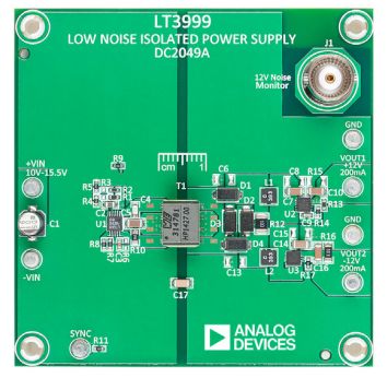 ADI公司的LT3999是一款单芯片、高电压、高频率DC-DC变压器驱动 器,提供隔离电源,解决方案尺寸很小。LT3999的最大开关频率为 1 MHz,具有外部同步能力和2.7 V至36 V的宽输入工作电压范围,代 表了为高速栅极驱动器提供稳定受控谐波和隔离电源的最高技 术水准。它采用裸露焊盘的10引脚MSOP和3 mm × 3 mm DFN封装。