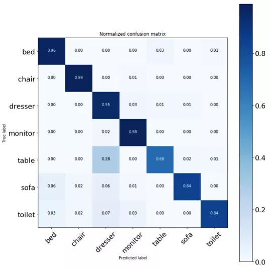 结果看起来不错,一切都进行得都很顺利,只是有些桌子被错误地识别为梳妆台了。我不确定为什么会发生这种情况。这可能是未来需要改进的步骤之一。