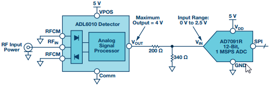 图6. 集成式微波功率检波器与精密ADC接口