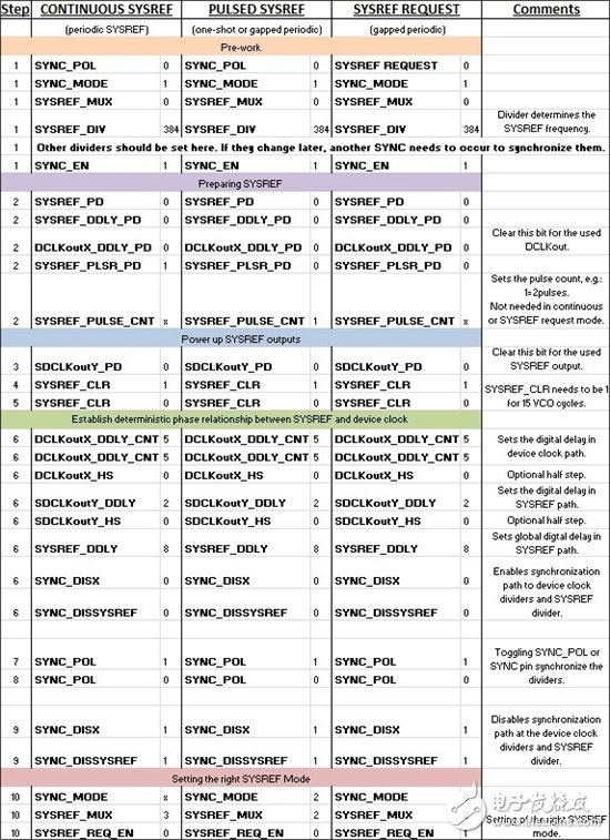 表1:能启用不同SYSREF模式的寄存器写入序列