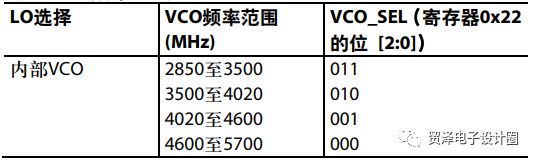c、通过寄存器 0x22 的位 [2:0] 选择适当的 VCO 频率范围(参见表3);