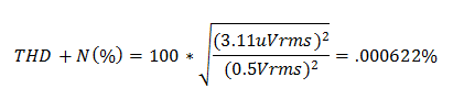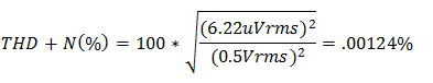 使用下图给出的输出幅值信息来计算这两个配置中噪声对THD+N测量值的影响: