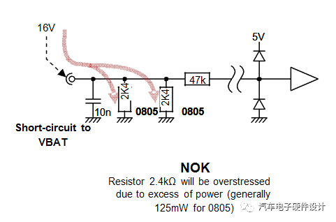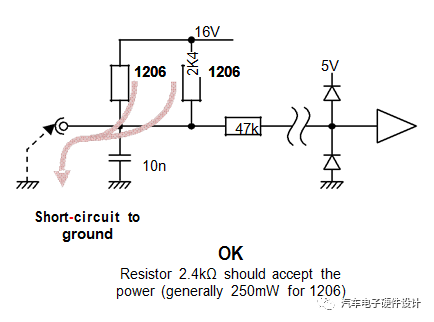 当短路被应用时,电阻器的功率损耗要高于电阻器所允许的最大功率,考虑因素是降额因素。