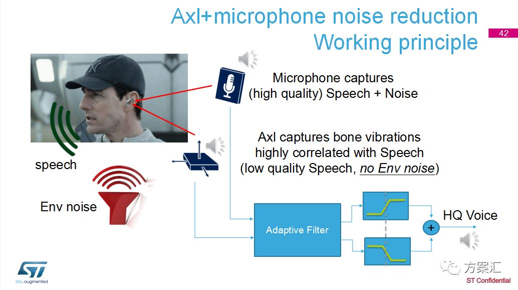 而LSM6DSR则是ST针对AI、VR应用而推广的高精度传感器。另外一款新产品LSM6DST也将于今年推出,主要在功耗方面有所提升,面向耳机应用。董恺补充道,“目前市面上的耳机都是双麦设计,ST则对麦克风作了特别的设计:在用户单独使用耳机时,骨振动传感器只采集声带的振动信息,再融合通过空气传播的声音信息,对比分析出环境噪音并采取降噪措施,从而获得高质量的上行语音信号。这也是ST今年将重点推广的器件。”