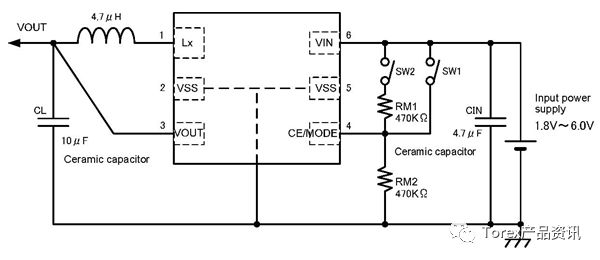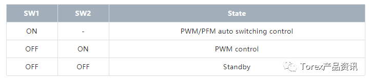 XC9237型在PWM/PFM自动转换基础上,又增加了用外部信号强制过渡到固定在PWM工作的功能。对应于使用机器的工作状态,能使其工作在纹波更低的PWM工作状态,能随时控制降低噪声(参照图6)