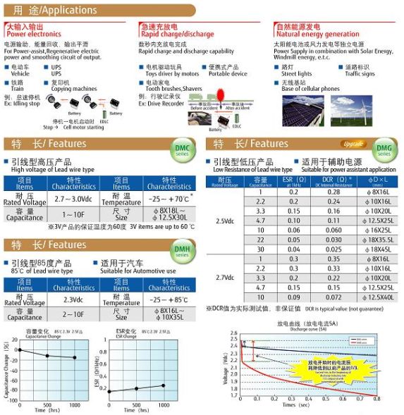 与普通的品牌相比,日本红宝石 Rubycon的电容具有更低的阻抗和更高的纹波,同时使用寿命也较更长。具有上述特性的电气二重层电容(超级电容)系列产品就非常实用于大输入输出、极速充放电、自然能源发电等应用。