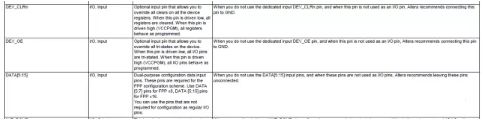 第四列中有明确的说明,对于DEV_CLRn和DEV_OE这个两个管脚,不使用的情况下需要直接接地处理,而对于DATA[5:15]这一组信号,不使用的情况下可以悬空处理。