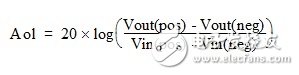 AOL 是输出电压与差分输入电压之比。该测量需要测量多个点的输入失调电压并计算 AOL。