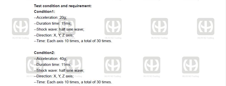 而在重力冲击测试中,技术指标包括:峰值加速度、脉冲持续时间。其中镭神送检的雷达经受20g的峰值加速度以及40g的峰值加速度测试;脉冲持续时间为11ms;冲击面为每个面冲击10次,合计共30次冲击,按照产业标准代理测试法进行严格的3轴向冲击。