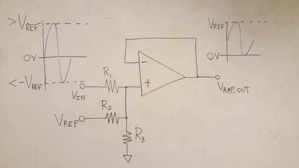针对大于±VREF的信号,可采用以下配置来执行带衰减的双极性到单极性转换。