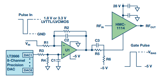 对栅极偏置设置的担忧是,偏置电压的小幅增加可能导致HPA电流的显著增加。这就增加了一个目标,即栅极控制电路应非常稳定,并有一个箝位器来防止受损。另一个问题是,设置所需漏极电流时,不同器件的最佳偏置电压有差异。这种差异使得人们更希望有系统内可编程栅极偏置特性。