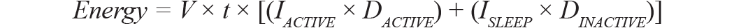每周期的电能是占空比D(以睡眠模式时间占总时间的百分比给出)的函数,可由一个简化的公式来定义,假设开启和关闭转换的电能很小。
