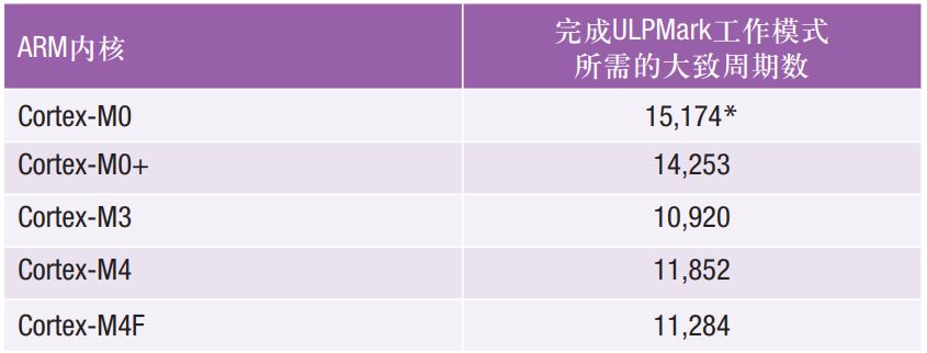 表1. 在流行的ARM内核上完成ULP-Mark-CoreProfile工作负载所需的大致周期数。周期数是近似值,因为周期数还与编译器有关。