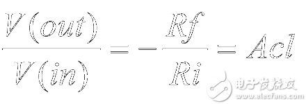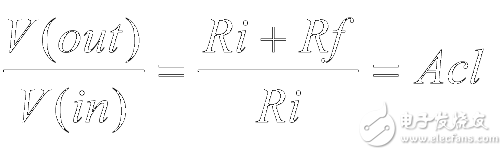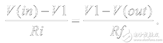 由于在输入引脚上可以没有电流,因此流经 Ri 的电流必须要与流经 Rf 的电流相等。用方程式表示如下: