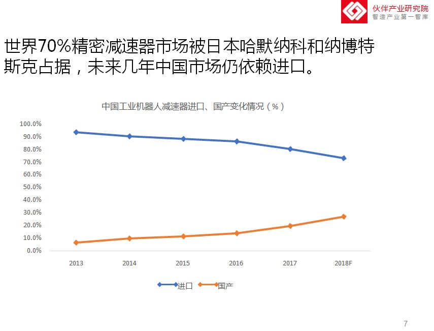 工业机器人共有三大核心零部件——控制器、伺服电机、减速器,占到机器人成本的70%以上。由于在核心零部件发展滞后,目前中国工业机器人产业的发展面临巨大挑战。
