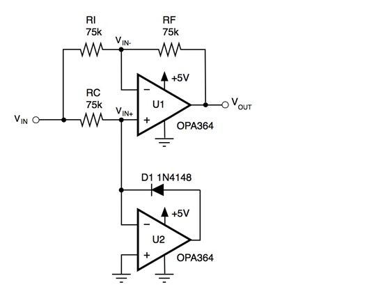 最近的许多设计都依靠单电源运算放大器 (op amp) 的饱和行为来实现整流。在许多情况下,这样做是可以接受的,但如果您想避免出现运算放大器饱和以及这种饱和带来的许多固有问题(缓慢的恢复时间、潜在的非理想相位反向),则图 1 所示电路是一款较好的解决方案。