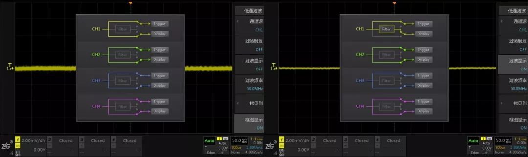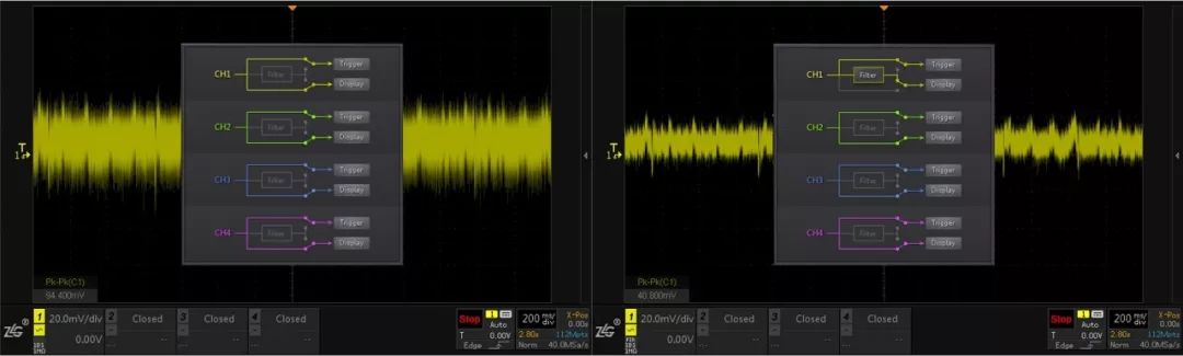 您在测量时,只需要预估一下自己想要测量的频率范围,然后设置好数字滤波器,就可以使你的示波器拥有更低的底噪,使得测量更加准确。