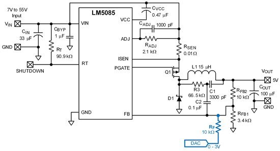 在很多应用中,必须通过外部控制信号动态控制转换器的输出电压。有些低电压转换器及控制器提供专用控制或跟踪输入来达到这一任务目的,但是大多数宽泛 VIN 转换器都不提供。在这篇博客文章中,我将讨论一种通过反馈引脚动态控制 DC/DC 转换器输出电压的通用方法。COT 转换器非常适合可变输出电压应用,因为输出电压变化不会影响转换器的闭环稳定性。