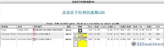 B:进行下一步,选择Gree公司的白光灯珠,