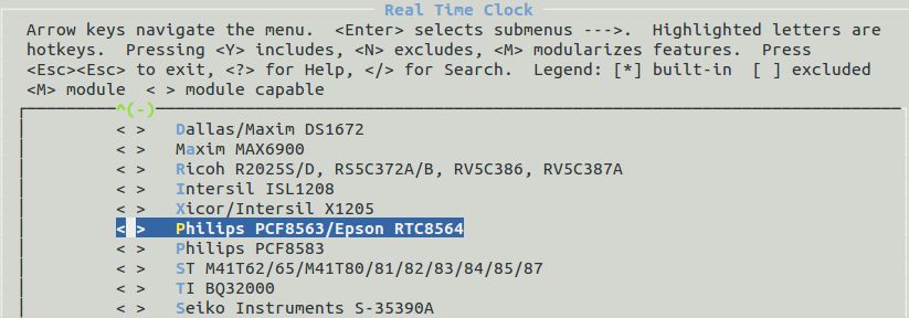 软件方面,我们仅以linux为例了解下RTC的使用。在内核配置中选择与硬件匹配的RTC驱动,以生成正确的内核镜像。