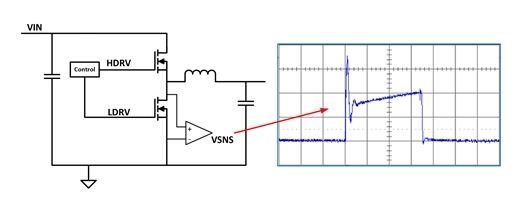 使用 FET 感测,但需要密切注意开关噪声!在 FET 切换时,会产生大量的噪声。这种噪声需要过滤。图 2 是 FET 感测方案以及噪声如何干扰测量。有几种方法可以减少噪声,但它们都有缺陷。