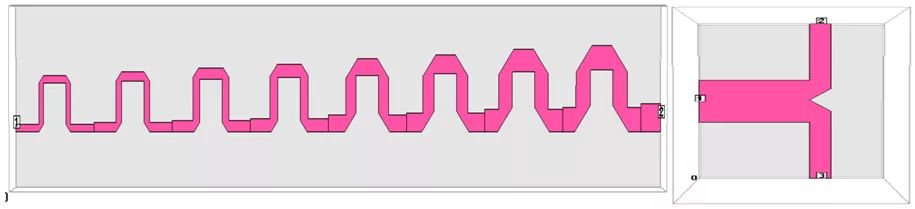 T型节的仿真结果见图6,由于我建模型时根据经验在T型节处切了角,T型节一次仿真结果也比较好。实际自己设计时可能需要调节T型节切角大小,请自行感受。