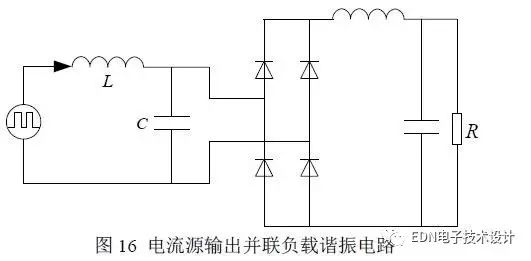 4. Buck 电路与并联负载谐振4.1 并联负载谐振的等效电路并联的负载谐振电路一般有两种形式,即输出整流侧电压源形式和输出电流源形式,具体的电路拓扑结构如图15 和图16 所示。