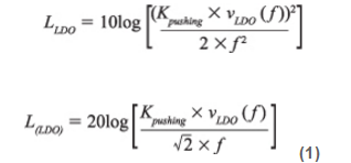 其中L(LDO)是失调为f时,调节器对VCO相位噪声(以dBc/Hz表示)的噪声贡献;f;Kpushing是VCO推压系数,以Hz/V表示;vLDO(f)是给定频率偏移下的噪声频谱密度,以V/√Hz表示.
