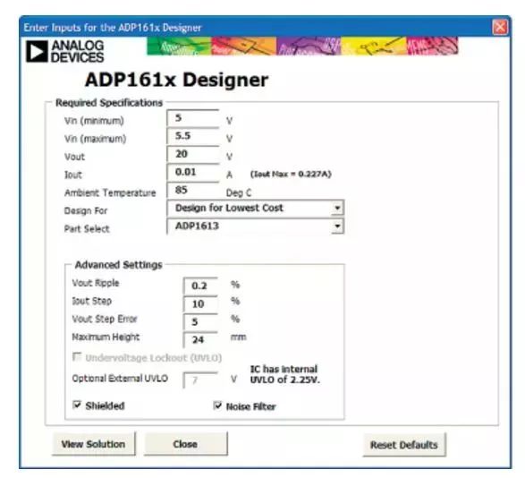 图8.ADP1613升压转换器EXCEL设计工具
