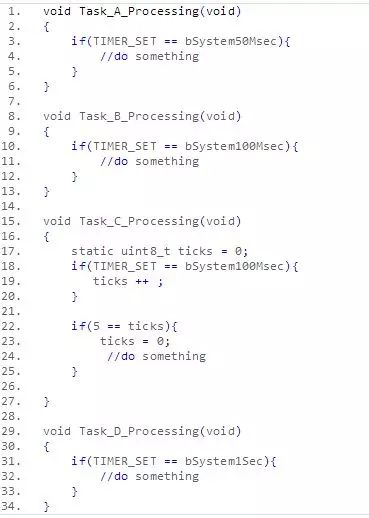 这时,我们需在主轮询while(1)内最开始调用一个定时处理函数如下: