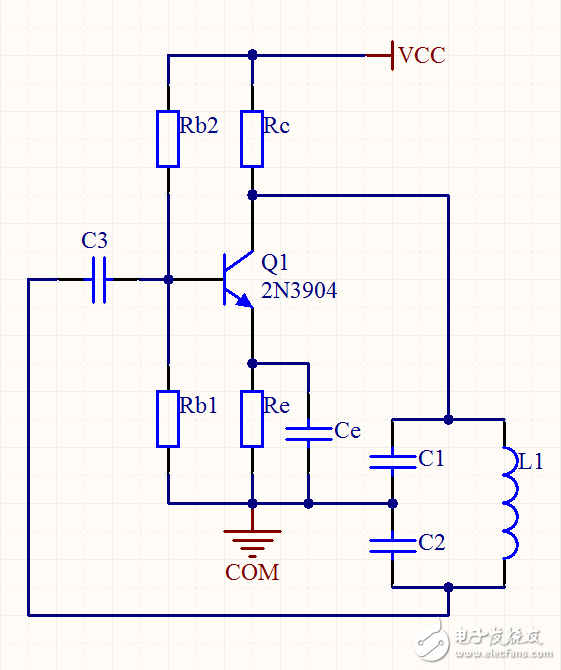 5. 电容反馈式振荡电路将 LC振荡电路 两个电容的三个端分别接晶体管的三个极,得到 电容反馈式振荡电路。这个振荡电路用 LC振荡、2N3904放大、电压串联组态反馈。[电路图]