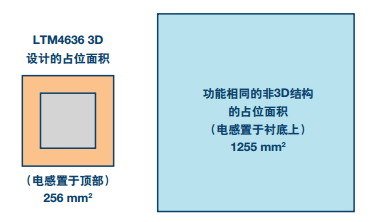 图2. 作为一款完整的POL解决方案,LTM4636堆叠式电感兼任散热器之职,可实现卓越的散热性能,具有占位面积小巧的特点。