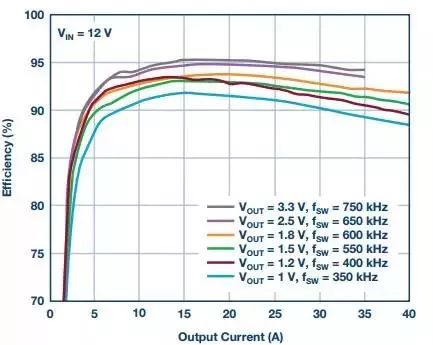 88%,12 V输入电压转换为1 V,40 A