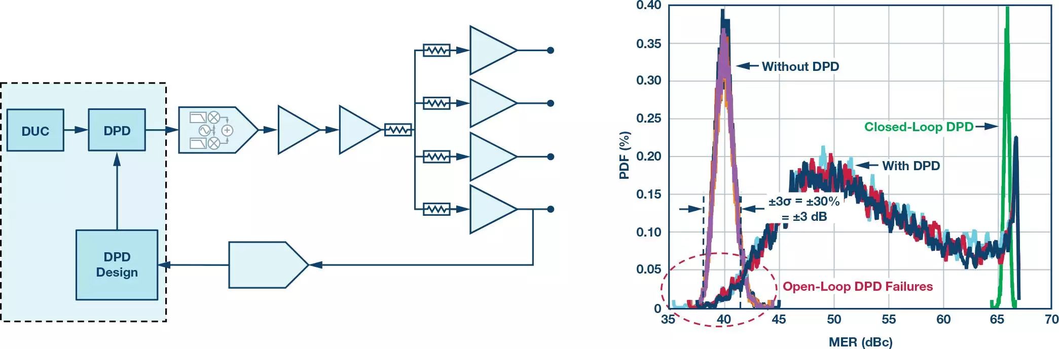 图13. 使用高级转换器和SMART算法的电缆数字预失真方案