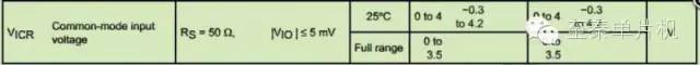 而有一些运放标注的不是输入电压范围,而是共模输入电压范围,如图1-2是TI的TLC2272数据表的一部分,在单电源+5V的条件下,共模输入范围是0-3.5V。其实由于运放正常工作时,同相端和反相端输入电压基本是一致的(虚短虚断),所以“输入电压范围”与“共模输入电压范围”都是一样的意思。