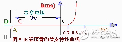 稳压管的稳压特性,可用图5一18所示伏安特性 曲线很清楚地表示出来。