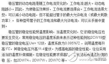 显然,对于同样的电流变化量ΔI,稳压管两端的 电压变化量ΔU越小,动态电阻越小,稳压管性能就越好。
