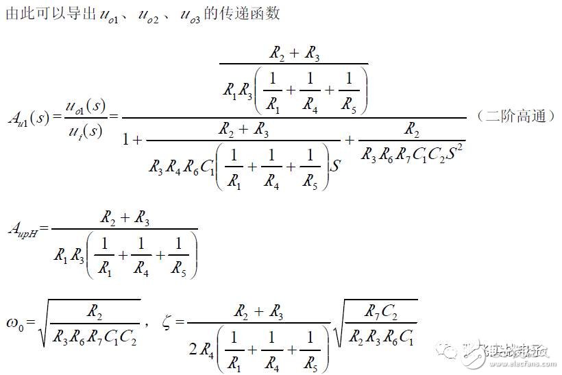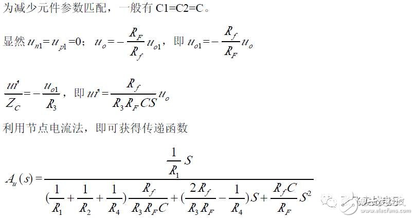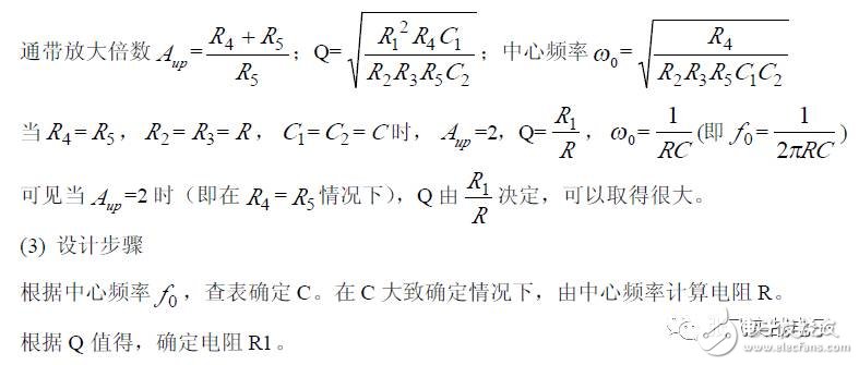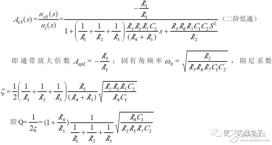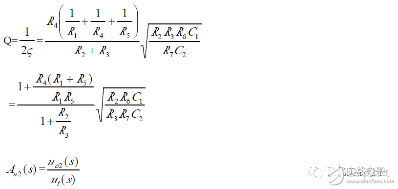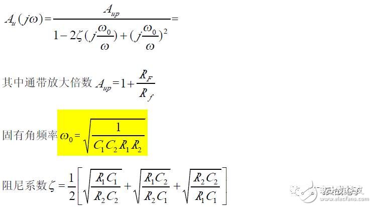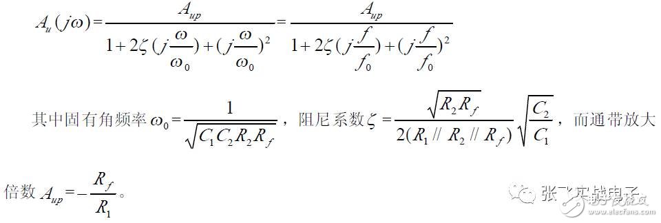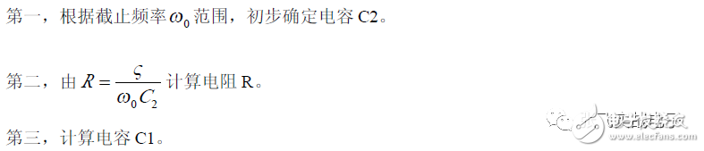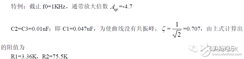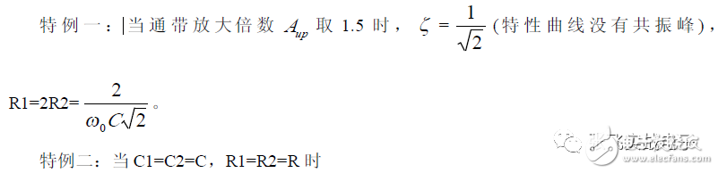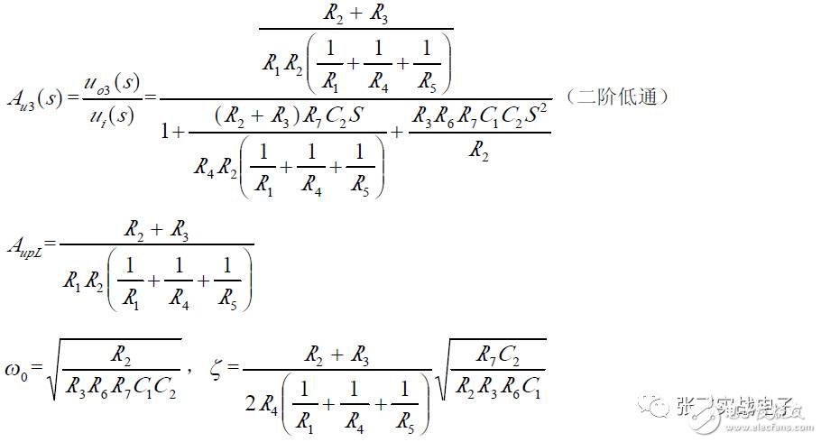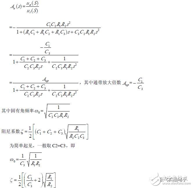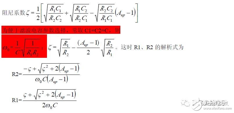 第二,在C1、C3 确定情况下,在固有频率ω0 、阻尼系数ζ 已知情况下,由下面解析式确定电阻R1、R2 的阻值。