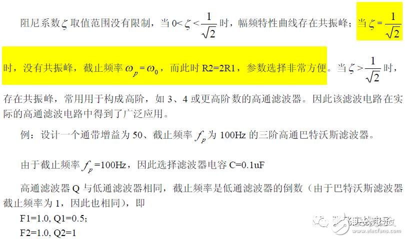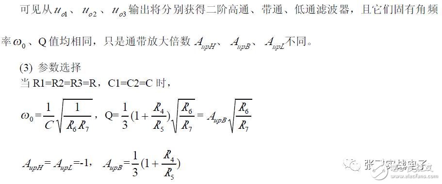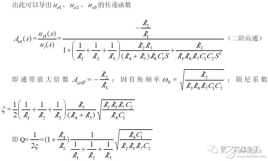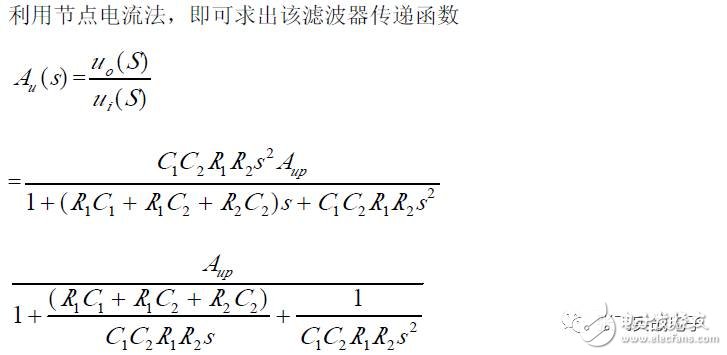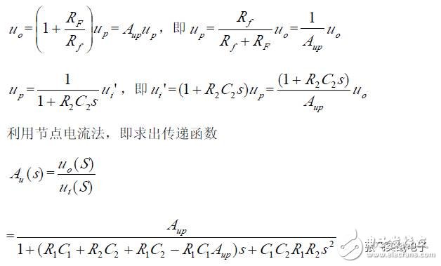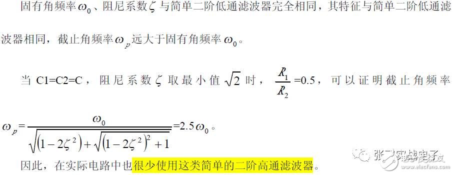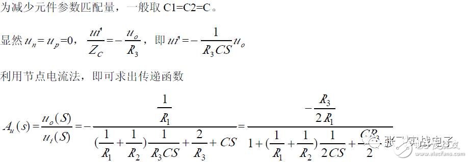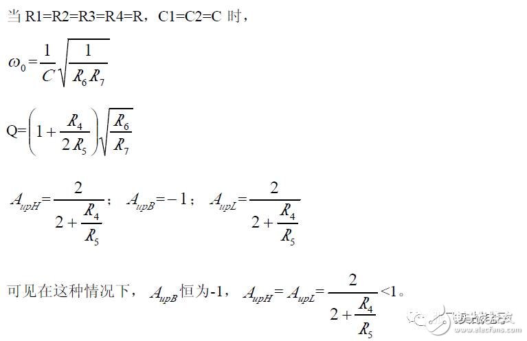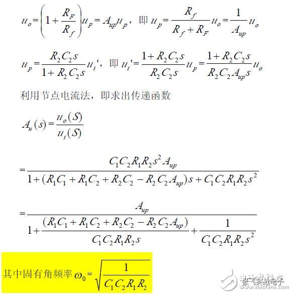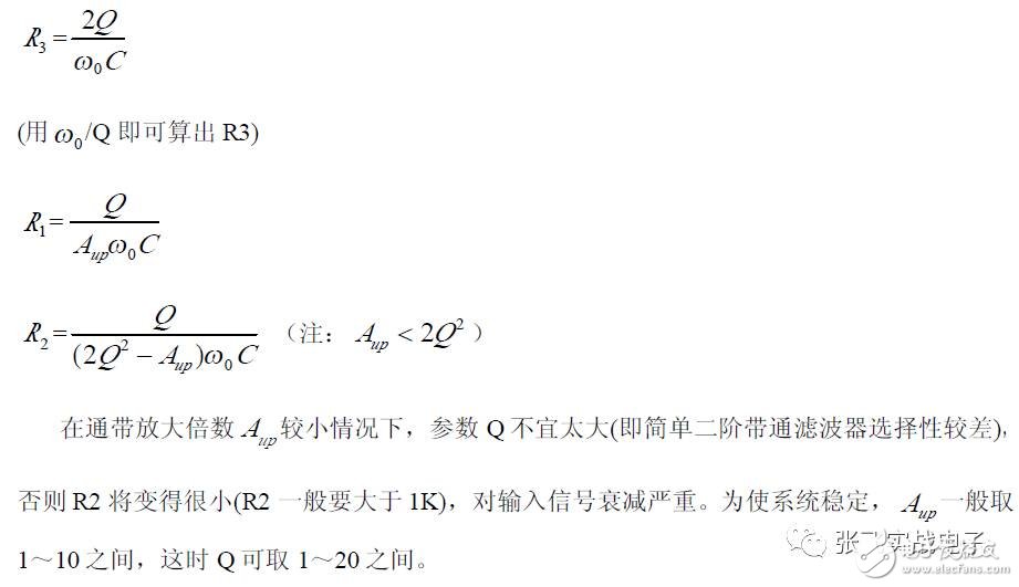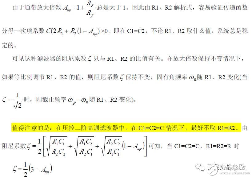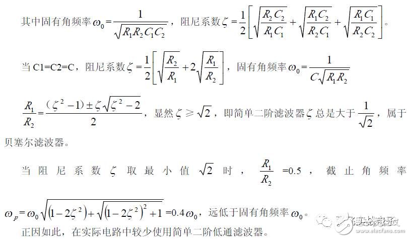 第二,在C1、C3 确定情况下,在固有频率ω0 、阻尼系数ζ 已知情况下,由下面解析式确定电阻R1、R2 的阻值。