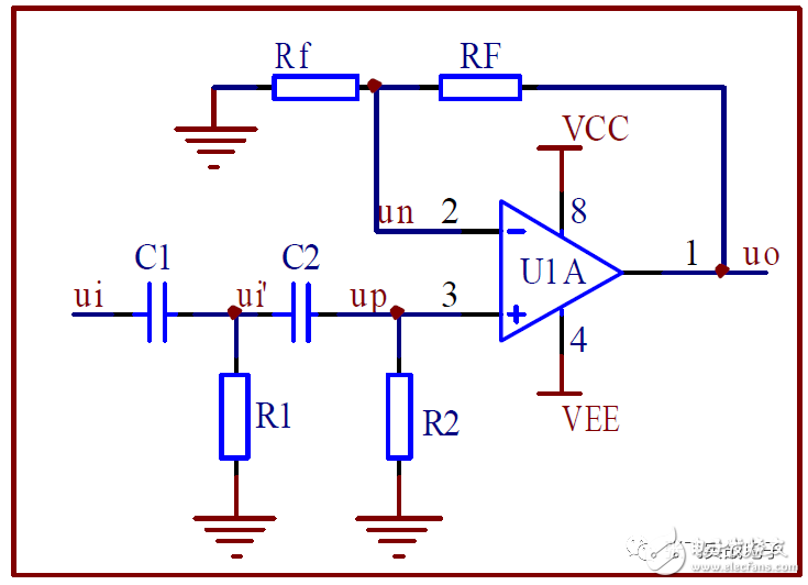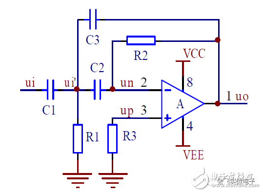 2通带增益Aup为1 的二阶压控高通滤波器